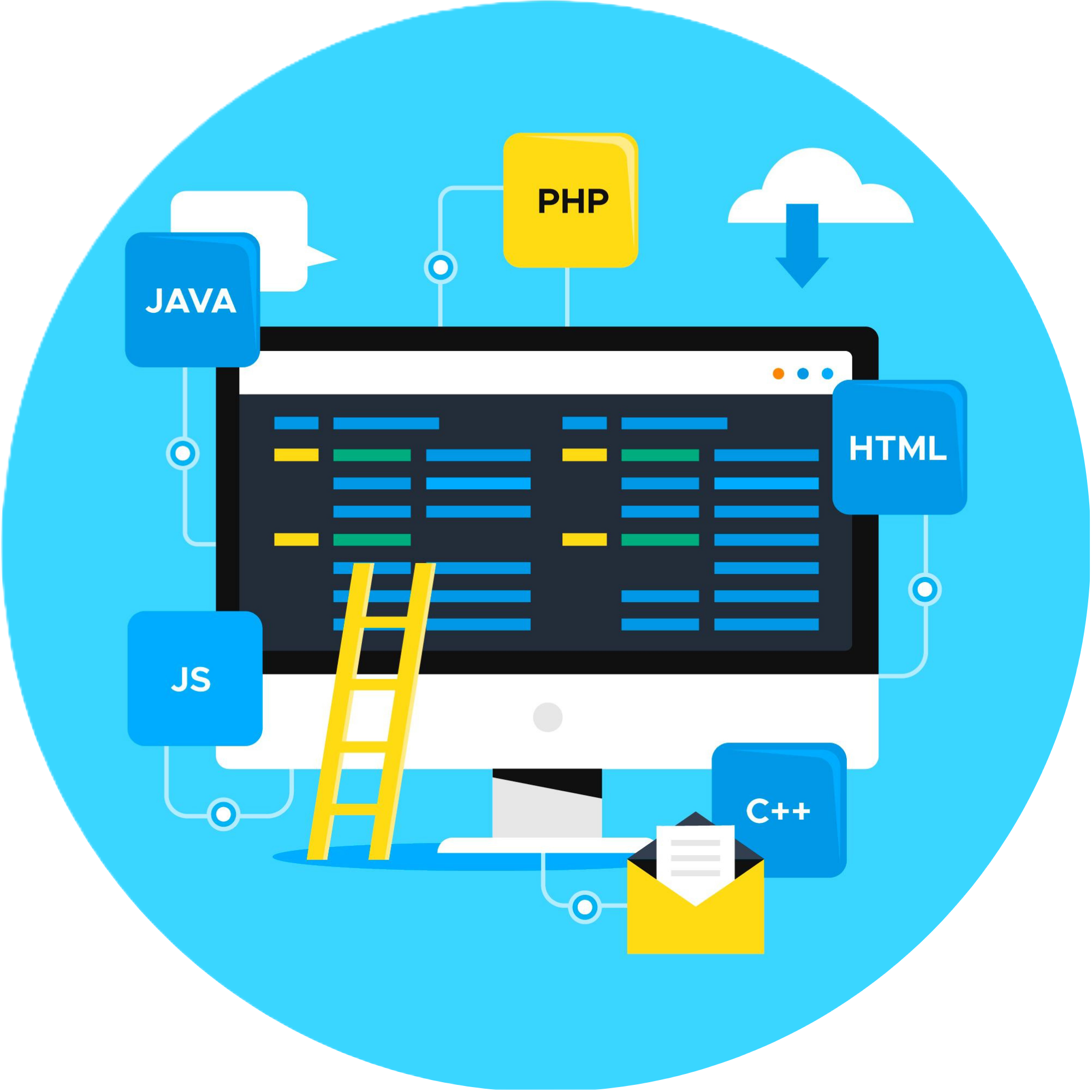 The fundamentals include Java, pHp, HTML, JS, C++, Mailing, Cloud Downloading, and Ladder.